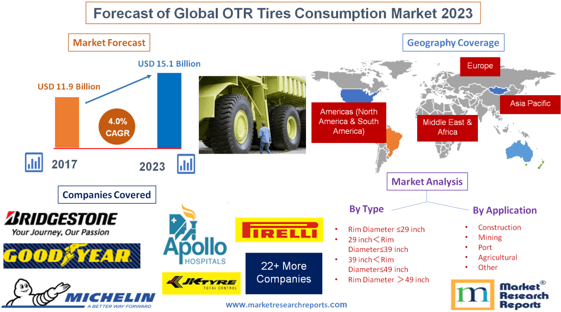 Global OTR Tires Market Will Grow at a CAGR 4.0 and Reach USD 15.1 Billion by 2023, from USD 11